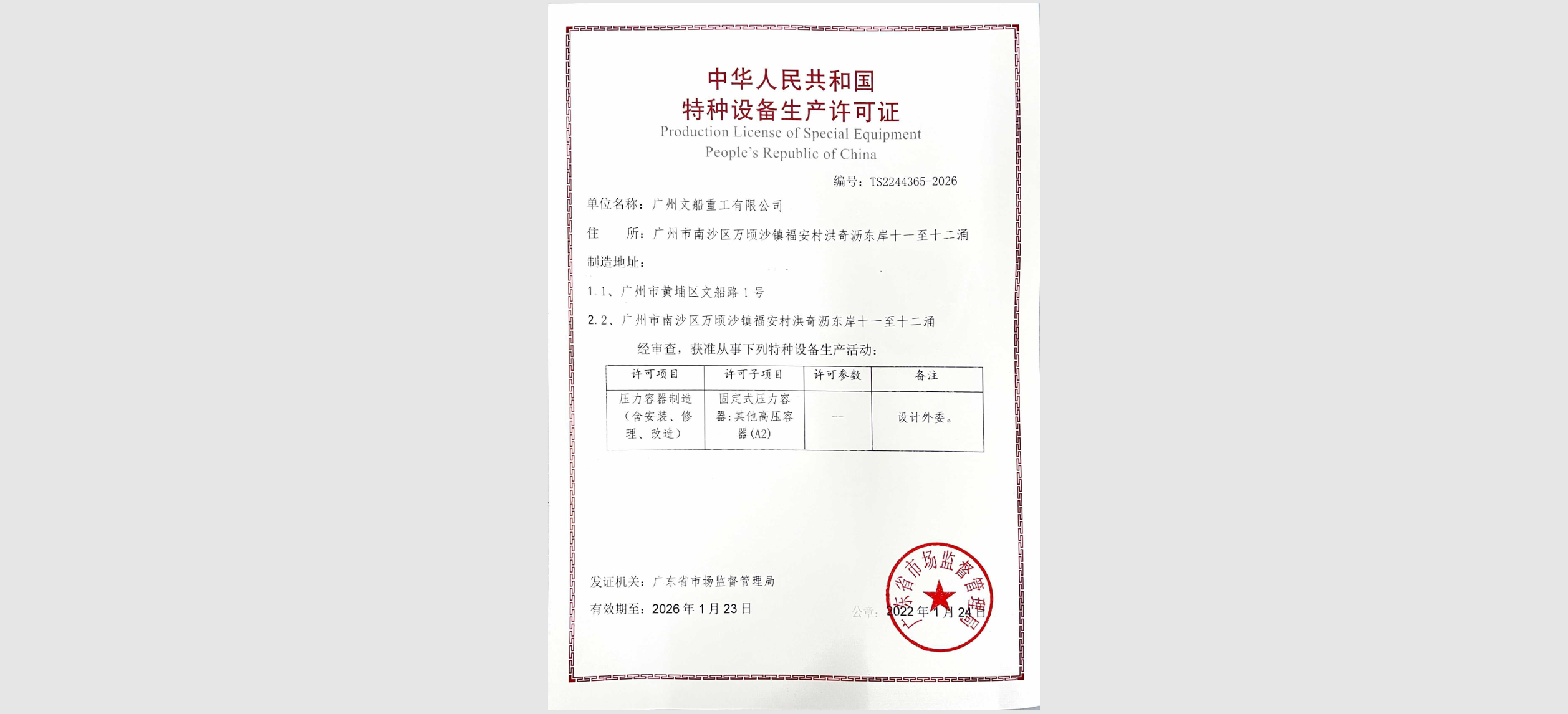 【Pressure Vessel Manufacturing (including Installation, Repair and Modification)】Production License of Special Equipment