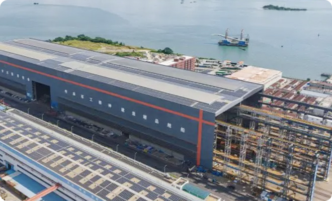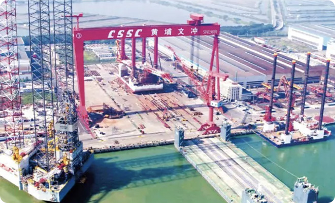 Located on Longxue Island, Nansha District, Guangzhou and adjacent to Hong Kong and Macao, Longxue Production Area is situated in the geographical center of Guangdong-Hong Kong-Macao Greater Bay Area. Covering an area of 1.18 million square meters, with a coastline of over 3500 meters and a dock length of 2110 meters, it has one 200000 ton dock, one 25000 ton slide, and two indoor slipways. It is equipped with large equipment such as 900 tons and 600 tons gantry cranes and has the ability to build large civil ships and marine equipment.